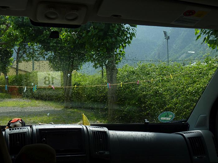 Dieses Zeichen begenet einem auf Schritt und tritt!![]() Ob am Fuß eines Verkehrsschildes ... ![]() ... am Mülleimer - oder aber ... ![]() ...auf dem Nummernschild! Macht ja auch richtig 'was her! ![]() Durch die schmalen Straßen ... ![]() ... zur historischen Altstadt. ![]() Diesen kleinen "Berg" ... ![]() ... über diese Treppen srklimmen! ![]() Und schon hat man einen schönen Ausblick auf das "neue" La Vella ... ![]() ... und dem Zugang zu deren historischem Teil. ![]() Ein paar Bilder ohne Worte! ![]() ![]() ![]() ![]() Hier schiebt sich die Blechlawine durch die engen Straßen! ![]() ![]() In den Gässchen viele kleine Restaurants und Geschäfte. ![]() ![]() Dies sich erst gegen Abend füllen. ![]() Das große Kongress-Zentrum. ![]() Auf dem Dach des Centers ein kleiner Park ... ![]() ... mit Restaurants und ... ![]() ... und Bänken die zum Entspanen im Schatten einladen. ![]() Hat etwa dieser junge Mann mein Geld in seinem Koffer? ![]() ![]() Noch ein Blick auf die Kirche und ... ![]() ... das Nachbargebäude ... ![]() ... beide mal zusammen - schon cool - oder?! ![]() Ein Felsen als Teil des Bauwerks! ![]() Da sind sie wieder - Pfahlsitzer! ![]() Und haben für die Nacht noch eine Überraschung bereit! ![]() 29 Grad - nicht schlecht für die Höhe! 1000 Meter über dem Meer! ![]() Immer am Fluss entlang ... ![]() ... führt der Weg zurück zum Campingplatz. ![]() Aber Beeilung - die Wolken kommen näher! ![]() Gerade noch geschafft. Wäsche abhängen und ab ins WoMo bevor es zu regnen beginnt. |