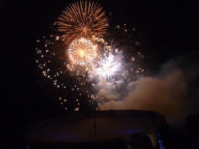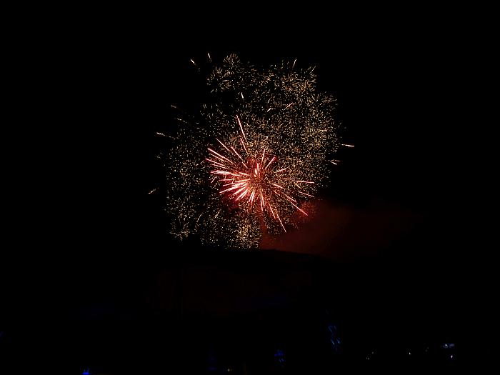 Nach kurzem Nachtmahl - schnell zum "Ballonglühen". ![]() Hier werden im Takt zur Musik ... ![]() ... die Brenner der Ballone angeschaltet. ![]() Ein tolles Schauspiel! ![]() Danach harter Rock auf der Bühne. ![]() ![]() Mit toller Lightshow und ... ![]() ... unter dem riesigen Sonnendach! ![]() Das nächste Spektakel folgte mit einem lauten Böllerschlag: Das Feuerwerk: ![]() ![]() ![]() ![]() ![]() ![]() ![]() ![]() ![]() ![]() ![]() Noch etwas Musik vom DJ. ![]() Dann erinnerte uns dieser alte Kollege daran, ... ![]() ... dass Mitternacht vorbei wäre - also Zeit für's Pösselchen. Ein toller Abend! |