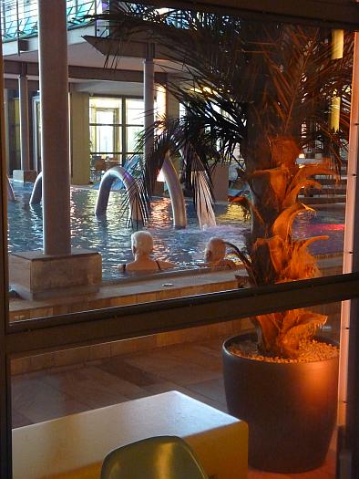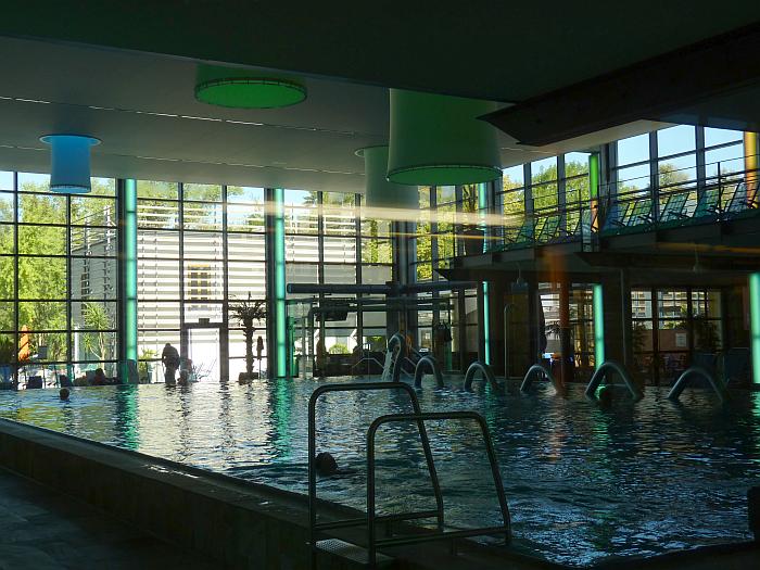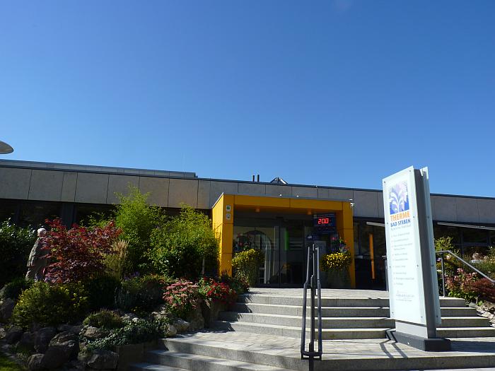 Bad Steben Der Wohnmobilstellplatz ist etwas weiter weg von der Therme Bad Steben - aber - für einen "Berg-der-Franken-Bezwinger" sicher kein unlösbares Problem. ![]() Die etwas andere Therme. Vieles muss man erlebt haben die Farben. ![]() Eine Wohlfühltherme, die zum entspannen enlädt. ![]() Leider kommen die Farbenspiele erst im Dunkeln zur Geltung. ![]() Auch der 7 Meter hohe Resonanzturm ist ein Erlebnis. Musik und Laser-Show im Wasser genießen. Light & Sound - Becken. Klangduschen. Eine tolle Duftgrotte. Der "Geysir" im Sole-Ausssenbecken - einfach toll. Es waren auch fast keine Leute da. Aber es lohnt sich wirklich mal eine andere Art von Therme zu erleben. War ein tolles Erlebnis! Mehr Infos einfach mal googlen. ![]() Einfach nett! Schaf sollte man sein! ![]() Mal sehen, wer genauso einen an der Klatsche hat, wie ich!? Bilder von einem "gefährlichen" Spaziergang durch den Kurpark gibt's hier |