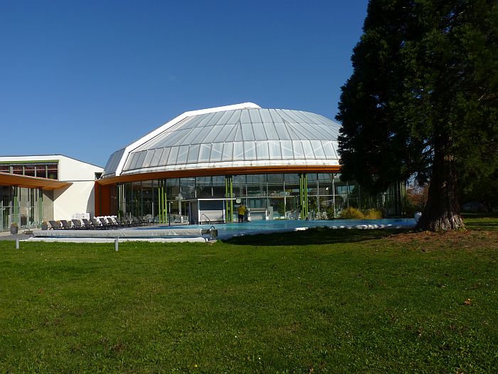 | Aulendorf - Schlaitdorf Nach einer kurzen Rast in Füssen war noch in der Nacht der Wohnmobil-Stellplatz der Schwabentherme das Ziel. Und natürlich auch ein Besuch derselben. ![]() Nicht weit - die Kuppel der Therme. ![]() Die sich öffnen läßt. Heute lieber mal nicht! ![]() ![]() ![]() Schön angelegter Eingangsbereich. ![]() ![]() ![]() ![]() Eine schöne Therme ... ![]() ... schade, dass die kleine Bar am Beckenrand nicht geöffnet hatte! ![]() Ein Blick zurück nach Italien? Nein ... ![]() ... auch bei uns ist "Indian summer". ![]() ![]() Da macht das Fahren noch mehr Spaß. ![]() Dazu noch: Sonnenuntergang über Schlaitdorf. |