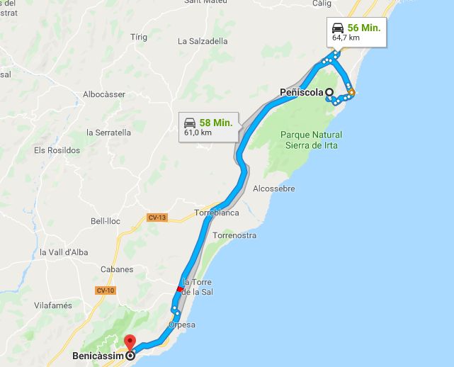 Von Peniscola nach Benicassim - erste Eindrücke ![]() 60 Kilometer - und keine großen fahrerischen Anforderungen ... ![]() ... immer gerade aus ... ![]() ... und sich vorsichtig - mit Tempo 60 - der nächsten Kurve nähern! ![]() Etwas Gymnastik am Straßenrand ... ![]() ... und ein Blick auf diese Kirche ... ![]() ... schon ist Benicassim erreicht. ![]() Die Straße noch entlang - Ende der heutigen Tour. ![]() Nicht ganz - einmal falsch abgebogen - "Bitte wenden!" - Trotzdem schöner Ausblick. ![]() Was macht man, wenn noch soviel vom Tag übrig ist!? Man folgt den Lichtern zum Meer - und ... ![]() ... schaut sich den Sonnenuntergang an. ![]() ![]() Die sollen reichen - es gibt noch anderes zu entdecken. ![]() Diesen Turm etwa ... ![]() ... oder diesen Holzweg ... ![]() ... der zu diesem ... ![]() ... interessant beleuchteten Platz führt. ![]() Dieses glitzernde Kunstwerk - und - ... ![]() ... die vielen kleinen, beleuchteten Kunstwerke ... ![]() ... entlang des Weges. ![]() Stahlplatten - von hinten beleuchtet. ![]() Hier endet der - jetzt blau beleuchtete - Weg -... ![]() ... und hier meine Tour - 19 Uhr und stockdunkel! Aber noch 15,5 Grad! |