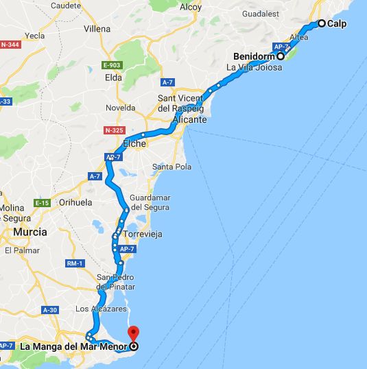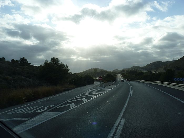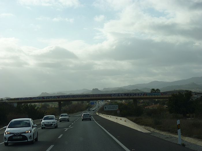 Von Calpe über Benidorm nach La Manga del Mar Menor![]() Kein Stellplatz in Benidorm -da wurde die Fahrtstrecke doch etwas länger! ![]() Die Abfahrt - irgendwie kann er sich ein Lächeln nicht verkneifen! Ich komme wieder!!! ![]() Aber erst mal raus aus Calpe vorbei an ... ![]() ... den beiden Monstern aus der Sylvesternacht - die kämpfen immer noch! ![]() Da macht Fahren Spaß ... ![]() ... ein gemütliches dahingleiten ... ![]() ... mit immer neuen ... ![]() ... schönen Eindrücken! ![]() Auch wenn er so ein schnelles Gefährt hat ... ![]() ... im Stau ist er so schnell wir ich! Deshalb etwas Zeit für die netten Häuserfassaden! ![]() Benidorm - die schwarzen Wolken verfolgen mich - und der Campingplatz ist auch voll! ![]() Vorwärts gen Süden - den schwarzen Wolken entkommen! ![]() Bei Sonne sicher eine tolle Kulisse! ![]() Zum Glück fast nichts los auf der Straße - auch keine drängelnden LKWs! ![]() Na schon erkannt ... ![]() ... da steht er, der wilde "Toro de Osborne" - Werbung für den Brandy Osborne Veterano! ![]() Da lass' ich doch lieber die Finger davon - damit ich diese Kurve noch kriege! ![]() Na - wenigsten schon ein paar blaue Flecken zu sehen! ![]() Wie auch immer - es wird schon dunkel ... ![]() ... und das abendliche Spektakel beginnt. ![]() ![]() ![]() ![]() Ein geniales Schauspiel geht zu Ende! ![]() Das "Mar Menor" ist erreicht - und bald auch der Campingplatz! |