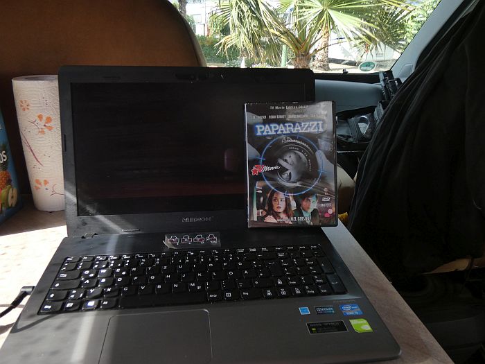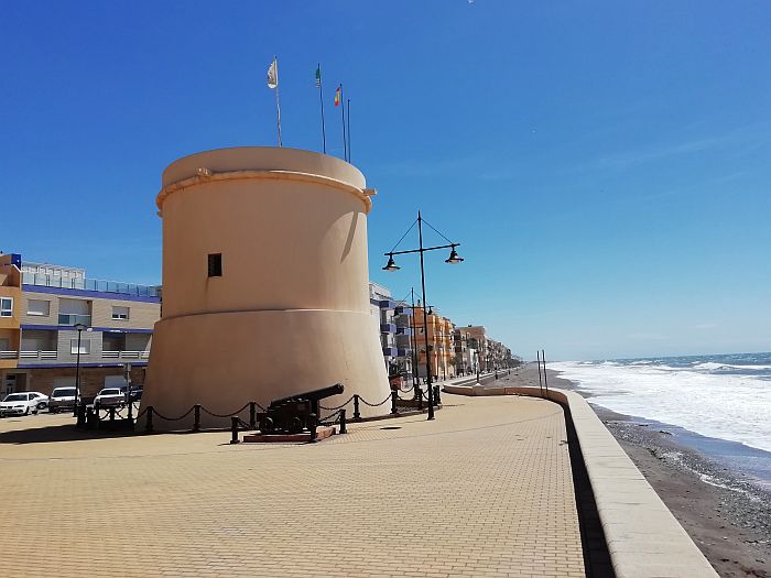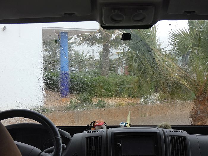 Gestern - etwas Bewegung wäre nicht schlecht - aber der Wind ... ![]() ... bläst ganz ordentlich - alle haben sich in das kleine Restaurant am Platz verzogen! ![]() Ich nicht!!! Doch hier an der Straße ist der Wind noch stärker ... ![]() ... am Strand fühlt es sich an wie "sandstrahlen"! ![]() Da kann man kaum die Kamera ruhighalten ... ![]() ... aber das Meer ist wieder einmal faszinierend. ![]() Dort vorne rechts - an der Strandpromenade - war der Spaziergang vorbei. Wenn ... ![]() ... die Stöcke buchstäblich vom Winde verweht werden - und schwarze Wolken sich zeigen! ![]() Das sieht stark nach Regen aus - Kino wäre nicht schlecht! Aber hier gibt es kein Kino! Dafür ... ![]() ... findet man im "Waschsalon" am Platz auch Bücher und ein paar DVD's. Nehm ich mir doch zwei mit! ![]() Na da habe ich doch Glück gehabt! Und langweilig wurde es mir auch nicht - denn ... ![]() ... der Film im Kino war gut - leider ohne Popcorn und Cola! Und - die Sonne scheint auch wieder! ![]() Heute: Tolle Aussicht auf die Berge - weniger toll - die einseitige Ausrichtung der Palmen. ![]() Nicht zum Strand - sondern gleich die etwas windgeschützte Straße entlang! Na denn ... ![]() ... es dauert etwas bis ich die erste "Sehenswürdigkeit" von Balerma erblicke. ![]() Dieser Brunnen - welcher tatsächlich bis hier herüber spritzt! ![]() Ein netter kleiner Park! ![]() So ein Häuschen könnte mir auch gefallen - mit ... ![]() ... Blick auf die Berge - und ... ![]() ... nicht weit vom Strand. ![]() Kein Mittagsmahl in der strahlenden Sonne am Meer! Dort auch schon der "Torre"! ![]() Hier ein windiges Plätzchen - dafür aber in der ersten Reihe! ![]() Turm - besser "Türmchen" - aber immerhin mit ... ![]() ... zwei Kanonen und ein ... ![]() ... stahlharter Typ mit T-Shirt - Aufschrift: "S.O.S. Balerma!" ![]() Keine Angst - ich geh ja schon wieder! Hier lässt der Wind plötzlich etwas nach. Angenehm! ![]() Ich hinterlasse noch meine Spuren im schwarzen Sand von Balermo - und ... ![]() ... schon geht es in diese Richtung zurück. Nicht am Strand entlang - wieder auf der Straße! |