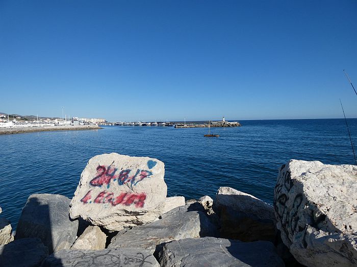 Vorgestern - und ewig lockt das Weib - und wie man sieht - mit allen Reizen ...![]() ... Sardinen am Spieß - - Sonnenschirm - Eimerchen mit Sandschäufelchen! ![]() Zum Glück konnte ich diesen Verlockungen widerstehen und durch die Gassen - ... ![]() ... vorbei an diesem Brunnen - ging es in Richtung Hafen. ![]() Noch nicht der Hafen - Der "Club Nautico" ... ![]() ... der Hafen - das sind noch ein paar Schritte hin! ![]() Na wieder mal interessant: "Doppelhaushälfte sucht die bessere Hälfte!" ... ![]() ... während man hier schon ein gemütliches Plätzchen gefunden hat! ![]() Dahinten komm ich also her ... ![]() ... hier bin ich* ... * kleiner Hinweis: Der Campingplatz ist links zu sehen! Und - "Gehen am Stock" ist am Strand offiziell erlaubt! ![]() ... dort drüben - zum Leuchtfeuer der Hafeneinfahrt - möchte ich hin! ![]() Na denn - wieder zurück und scharf rechts abbiegen ... ![]() ... Hafen erreicht - noch drüben auf die Mauer! Aber ... ![]() ... leider ist mein Ziel vergittert - bleibt nur ein Blick ... ![]() ... auf den Strand auf der anderen Seite des Hafens - wozu braucht man eigentlich so viel Strand? ![]() Um dann mit seinem Katamaran an überlaufenen Stränden zu ankern!? ![]() OK - wenn ich hier wohnen würde - oder ... ![]() ... vielleicht hier - in der etwas luxuriöseren Käfighaltung - ist sicher etwas Strand nicht schlecht! ![]() Während diese Farben mein Auge noch erfreuen ... ![]() ... ist dieser Anblick nicht so angenehm - hatte ich den "Faro"* nicht größer in Erinnerung!? * Die dünne Nadel gleich links neben dem Turm der Rettungswacht ![]() Hunde die bellen - beißen nicht - und - Papageien die "grasen" - machen keinen Krach! ![]() Apropo! Etwas gegen Hunger - nicht schlecht! Erst mal in flüssiger Form! - "Ich guinn ess mir!"* *Achtung Wortspiel!!! ![]() Wie heißt es so schön - "Never look back!" - ich tu's trotzdem ... ![]() ... und gleich noch einen Blick auf's Meer hinterher. ![]() Der "Faro" hat auch wieder eine - problemlos zu Fuß - erreichbare Größe erreicht! ![]() Am Strand ist auch nicht mehr viel los - und bevor ... ![]() ... auch hier das Feuer im "Grill-Boot" ausgeht - zurück zum Platz. Gestern: Der blaue Himmel lädt zum Sonnenbad ein - aber auch die Nacht hat ihren Reiz! ![]() Doch noch bevor es richtig dunkel wird - ein kleine ... ![]() ... - nicht nur optisch - leckere Mahlzeit* in einem der Restaurants - nicht direkt am Strand. *Wen es interessiert: "Hühnchenkroketten" und "Russischer Salat" - Kartoffelsalat mit Thunfisch - sehr lecker! ![]() Gestärkt kann es losgehen ... ![]() einfach mal der Strandpromenade entlang! ![]() Zu diesem schön beleuchtetem Pavillon ... ![]() ... und der Modonna ... ![]() ... welche sich ... ![]() ... immer wieder in ... ![]() ... neuen Farben zeigt! ![]() Sonntag - Abend - viele Spanier haben sich bereits auf den Heimweg gemacht ... ![]() ... und wenn man eine Jacke dabei hatte - wie ich - war das auch nicht die schlechteste Idee! ![]() An ihm kommt man halt nicht vorbei ... ![]() ... ohne ein Bild zu machen. ![]() Links oder rechts - keine Frage! Und morgen - ist wieder Sonntag! Oder etwa nicht!? |