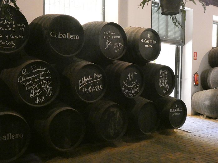 Gestern - Fast pünktlich losgekommen ...![]() ... aber der Weg zieht sich doch etwas - und ... ![]() ... als der erste Turm in Sicht kam - und dann endlich der Rest ... ![]() ... wäre ein kühles Getränk im Schatten nicht schlecht gewesen! Stattdessen war ich ... ![]() ... zu früh dran - und wartete mit den Jungs und Mädels aus Ulm - die auf ... ![]() ... ihrer Abschlußfahrt ihrer Ausbildung waren! Die "Führerin kam - es konnte losgehen! ![]() Hätte ich besser zugehört - könnte ich auch etwas erzählen - aber ... ![]() ... so mitten in der Nacht - ein Vortrag in englischer Sprache - lass Bilder sprechen! ![]() ![]() ![]() ![]() ![]() ![]() ![]() ![]() ![]() ![]() Also die Burg war schon Kirche und Moschee - und - heute nutzt "Caballero" - einer der ... ![]() ... der größten Spirituosenhersteller Spaniens - sie für Events und Verkostungen! ![]() Kleine Sherry Kunde! ![]() Ganz oben der junge - dann darunter der ein Jahr ältere - und unten der "alte" Wein. ![]() Jetzt wird es tricky! Die Fässer sind nur knapp bis über das "Caballero" befüllt! Einmal im Jahr entnimmt man dem unteren Faß den Sherry bis etwas unter dem "Caballero" - füllt diesen in Flaschen ab - der Rest verbleibt im Faß und wird mit der gleichen Menge aus dem mittleren Faß aufgefüllt. Vom oberen Faß wird wieder die gleiche Menge ins mittlere Faß umgefüllt! Das obere Faß noch mit der gleichen Menege vom jungen Wein nachfüllen! Perfekt! Alles klar - oder?! ![]() Man weiß also nie genau wie alt der Wein darin ist - aber man kann ja mal probieren! ![]() 5 verschiedene - trocken bis süßlich. Hell und dunkler. ![]() Ich bin ein süßer Typ! So ein Sherry hat zwischen 14 und 22 Prozent. Also schnell zurück ... ![]() ... bevor der Alkohol seine Wirkung entfaltet. Und: Gehe nicht zur Konkurrenz ... ![]() ... nehme hier nich auch noch an einer Verkostung teil. Sondern begebe dich direkt ... ![]() ... zum Strand und schau dir dein Ziel für den Abendspaziergang an! ![]() Kurz nach 19 Uhr - vorbei an den Mitbewohnern - die sich für die Einnahme Tagesnachrichten rüsten ... ![]() ... also an der Strandpromenade entlang zum Leuchtturm von "Puerto Sherry"! ![]() Trotz dem Genuß des gleichnamigen Getränks am Vormittag, waren diese Dünen kein Problem. ![]() Eher hat es sich wie Medizin ausgewirkt - vielleicht eine gute Methode ... ![]() ... solange man keine Segelboote an Land sieht - sondern ... ![]() ... sondern da, wo sie hingehören! Im Wasser! ![]() Ein schöner alter Zweimaster - und - da hinten der "Faro". ![]() Nicht weniger schön! ![]() ![]() ![]() Zurück geht's! ![]() An diesem netten Restaurant vorbei ... ![]() ... entlang dem "Bulevar del Cream"* ... * Bezogen auf einen etwas süßeren Sherry speziell für Engländer - den sie zu ihrem "After Eight" trinken können! ![]() ... Durchblick auf Cadiz - dem nächsten Ziel! ![]() Hier ein Hingucker - und auf der anderen Seite ... ![]() ... ja da könnte man doch noch etwas verbessern. ![]() Die "Golden Gate" von Cadiz! ![]() Was steht auf dieser Säule - "Carpe Diem" ... ![]() ... "Genieße den Augenblick" - kein Problem - mach ich schon!!! |