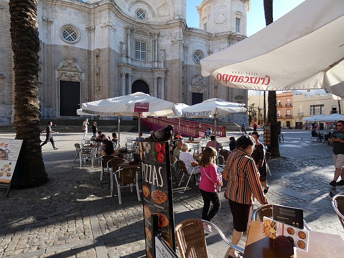 Gestern - Cadiz - eine See-Reise wert? Bald wird es sich zeigen - wenn ...![]() ... er die Kurve kriegt und das Tau nicht noch in letzter Sekunde sein Ziel verfehlt! ![]() Raus auf auf's Meer - vorbei an Motorboden und Yachten - und - dem langen Heimweg! ![]() Der "Faro" von gestern - mal nicht aus Sicht der Landratte - sondern der eines echten Seefahrers! ![]() Na - die hatten wohl die* gleiche Idee - aber sicher nicht für 2,75 Euro die Fahrt! * Aida-Stella (links -2700 Passagiere) - Emerald Princess (rechts - 3100 Passagiere) ![]() Hier der Anleger - nicht gerade einladen - aber im Rücken ... ![]() ... sieht die Welt ganz anders aus - da ... ![]() ... kann man gut auf schwankenden Beinen sich mal die Füße vertreten! ![]() Dann schau ich mir Cadiz etwas abseits der Piraten an ... ![]() ... dort wo man noch "frei" gehen kann ... ![]() ... und noch ein freies Plätzchen im Restaurant um die Ecke findet. ![]() Auf Sehenswertes und ... ![]() ... Gemütliches in netter Umgebung braucht man hier nicht zu verzichten. ![]() Wunderschöne Farben ... ![]() ... eine tolle Architektur und das ... ![]() ... Plätschern dieses Brunnens. Sollte es nicht nur auf Gemüt drücken - sondern ... ![]() ... auch etwas auf die Blase - hier wäre Abhilfe möglich - und ... ![]() ... ein Abstecher in den angrenzenden Parkist Pflicht. Aber vorsichtig! ... ![]() ... hier plätschert es wieder! ![]() Das "Castillo de Santa Catalina" ist erreicht - und offen! Also nicht hinsetzen ... ![]() ... mal hineinschauen. Der hat es schön ... ![]() ... darf hier im Schatten stehen! Ich muß wieder in die Sonne ... ![]() ... die heute scheinbar keine Gnade kennt! Um das nächste "Castillo" in der Ferne zu sehen. ![]() Oh - Klimawandel! Spaß* - das Meer hat mich gesehen ;-) * Der Tidenhub beträgt so 2 Meter! ![]() Also vor dem "Boots-Date" auf den "TidesChart" schauen - damit man nicht auf dem Trockenen sitzt! ![]() Noch ein kurzer Blick in den schönen Innenhof - dann ... ![]() ... weiter zum "Castillo de San Sebastian" - dort drüben - vorbei am ... ![]() ... "Playa de la Caleta" - dann hinten rechts ab zur Burg. ![]() Der Strand ist schon wieder in weiter Ferne ... ![]() ... das "Castillo" auch noch - und ... ![]() ... hat - wie ein gezoomter Blick zeigt - seine Tore bereits geschlossen! ![]() Kehrtwende - das nächste Ziel die beiden Türme - rechts! ![]() Da ist die Navigation in den Gassen schon schwieriger! Nett - aber hier geht es sicher nicht entlang! ![]() Also wieder zum Meer - und diese Richtung - einen Katzensprung noch! ![]() Leider darf die Katze aber nicht rein ... ![]() ... da ab 19 Uhr die "Cathedral de Cadiz" geschlossen ist! ![]() Na dann doch lieber die Taube* auf der Pizza-Reklame - als gar keine Bilder ... * denke eine spanische Taube - mit italienischen Wurzeln - Preisfrage: Welche Pizza hat sie wohl bestellt? ![]() ... aber da wäre ja noch diese Kirche - auch gleich hier am Platz - offen wäre ja ... ![]() Sieht auch toll aus - aber ... ![]() ... hier wird gepredigt - ich will dann mal nicht stören ... ![]() ... also schon mal Richtung Hafen - sieht richtig leer aus im Café und in den Gassen ... ![]() ... sogar diese schwarz/weiße Kampf-Kuh sucht einsam einen Gegner - sorry - keine Zeit! ![]() Hier die Lösung - vor dem abendlichen Buffet hat sich "Stella" aus dem Staub gemacht! ![]() Ich hätte zwar noch genügend Zeit - aber ... ![]() ... irgendwie war die Sonne doch noch etwas ungewohnt - also ... ![]() ... vorbei an den blauen Fontänen dieses Brunnens. Die "Emerald Princess" liegt noch an der Pier! ![]() Ok - das sind schon eher Fontänen! Nach dem zweimal das Horn laut ertönte - ereilte auch mich ... ![]() ... das Schicksal der "Emerald Princess" - Rückwärtsgang - drehen - und - Adios Cadiz! ![]() Voller Schub - ab zum Puerto von Santa Maria. Sieht doch ohne die Kreuzfahrtschiffe richtig leer aus!? ![]() Während dort die ersten ihren Sundowner an der Bar genießen ... ![]() ... ist hier noch der "Kampf am Fisch-Buffet" in vollem Gange! ![]() Der Anleger ist erreicht - aus dem stolzen Seemann wird wieder die Landratte ... ![]() ... die sich - mit sehnsüchtigem Blick auf das Fährboot - auf den ... ![]() ... langen Weg entlang der Strandpromenade machen muss! "Take the long way home!"* * ich denke mal Supertramp - auf was man aus Langeweile so alles kommt! ![]() Noch etwas Gerätetraining am Wegesrand! Nein - danke - morgen - vielleicht!* * soll heißen - ganz sicher nicht! ![]() Buenas nodges - Cadiz! |