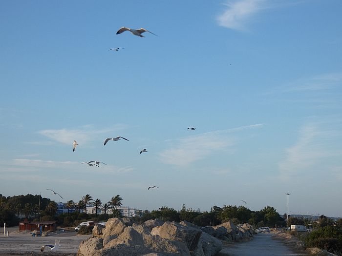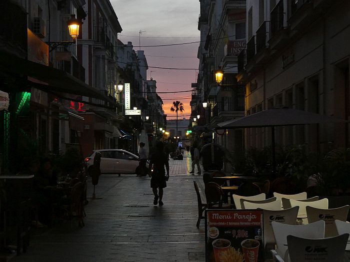 Vorgestern - Heute einfach mal die warmen Abendstunden nutzen ...![]() ... nach über 30 Grad am Nachmittag. Noch ein Blick auf den Strand - dann ... ![]() ...durch die Gassen zur Stierkampfarena* ... *der Beschreibung nach mit eine der schönsten in Spanien ![]() ... vielleicht läßt mich doch jemand hinein!? ![]() Der interessiert gar nicht für mich - und ... ![]() ... bevor ich mit ihm anlege - der Klügere gibt nach - und ... ![]() ... folgt dem Geklapper zur Kirche - die Störche sind noch da - aber ... ![]() ... die Lichter noch aus. Hier sind sie schon an - 21 Uhr - 21 Grad ... ![]() ... doch die Restaurants haben sich schon geleert! ![]() Die klappern wenigstens nicht so laut! ![]() Na so gefällt es mir doch wesentlich besser. ![]() Mit etwas Licht sieht es doch gleich besser aus ... ![]() ... und ein Plätzchen wäre auch noch frei! ![]() Aber wer rastet - der rostet - bei mir geht dies scheinbar sehr schnell! ![]() Also doch lieber gleich weiter ... ![]() ... durch die Nacht - in Richtung "Heimat". ![]() Meine "Golden Gate" von Cadiz -kann sich auch ohne Stativ sehen lassen! ![]() Hola - die Geräte wären ja frei - aber die einzige Übung die mir gefallen könnte - ist ... ![]() ... wie man sieht - eine Partnerübung - und der fehlt mir - hätte die Übung gerne gemacht! ![]() Gestern: Neuer Tag - der alte Strand - aber vielleicht neue Gymnastikpartner!? Zu dritt!? ![]() Bei zwei Sitzgelegenheiten- geht nicht! Ok - hier ginge es! Aber keiner da! ![]() Dann halt durch den Dünen-Wald wandern - fast wie auf meinem Flokati! ![]() Demnächst sind EU-Wahlen - ein schlechtes Omen? Da sind nicht viele Sterne übrig! ![]() Ein gutes Omen: Ich bin beim "Puerto Sherry" angekommen - und ... ![]() ... beim "Faro" war ich schon - na denn - zurück ... ![]() ... an der Strandbar vorbei - zum ... ![]() ... stopp! Konkurrenz - da unten am Strand ... ![]() ... na ja - bei dem Motiv - kann's doch jeder! da ist so ... ![]() ... ein Strand doch wesentlich anspruchsvoller - der mich auch noch um diese Zeit glatt im ... ![]() ... Trockenen stehen lässt. Um 12 Uhr* wäre hier Aqua-Jogging angesagt! * der Unterschied zwischen Ebbe und Flut macht hier 2,80 Meter aus! ![]() Hätte man ihm vielleicht auch mal sagen sollen!? ![]() Für mich geht es trockenen Fußes - bis zum Leuchtfeuer - in diese Richtung ... ![]() ... links Cadiz - rechts der "Faro" von vorher! ![]() Das Leuchtfeuer - und - der Grund warum heute die Fähre heute ... ![]() ... im Hafen bleiben durfte. Wellen und hier ein starker Wind ... ![]() ... der einem fast ins Meer bläst! ![]() Aber das "Risiko" lohnt sich. ![]() Schnell noch einen Blick auf den Leuchtturm ... ![]() ... nach Cadiz ... ![]() ... dann schnell wieder windgeschützt zurück zum Strand. ![]() Ab und zu doch einen Blick ... ![]() ... über die Schulter ... ![]() ... und zur Madonna an der Hafeneinfahrt - ... ![]() ... die halbe Strecke ist geschafft! ![]() ... die Sonne geht unter ... ![]() ... doch der Strand ist fast erreicht. ![]() "Die Vögel" - Hitchcock läßt grüßen! Möglichst noch ohne "Treffer" unter ihnen ... ![]() ... durch - und - bevor die Flut wieder kommt ... ![]() ... zurück auf die sichere Strandpromenade! Aber aufpassen ... ![]() ... könnte es feucht werden! ![]() Geschafft! Das Meer darf wieder an Land kommen - und - die Sonne darf gerne untergehen! |
