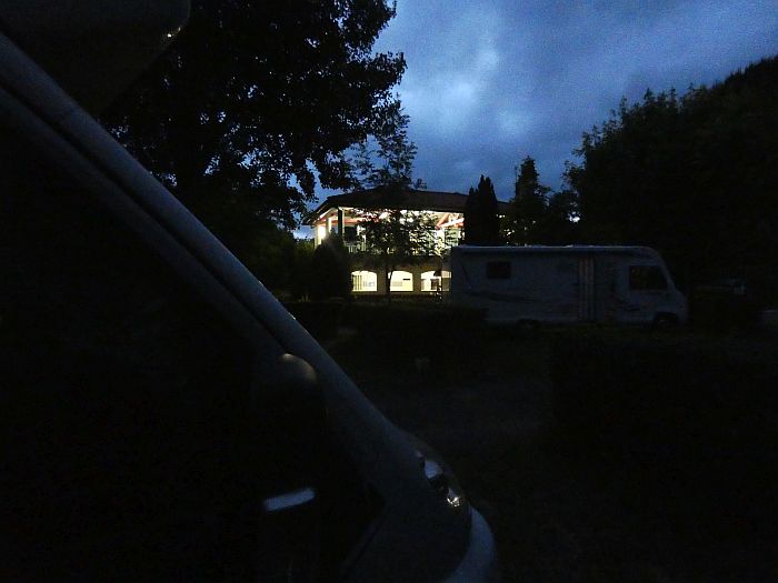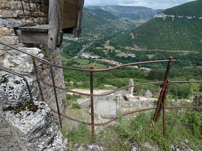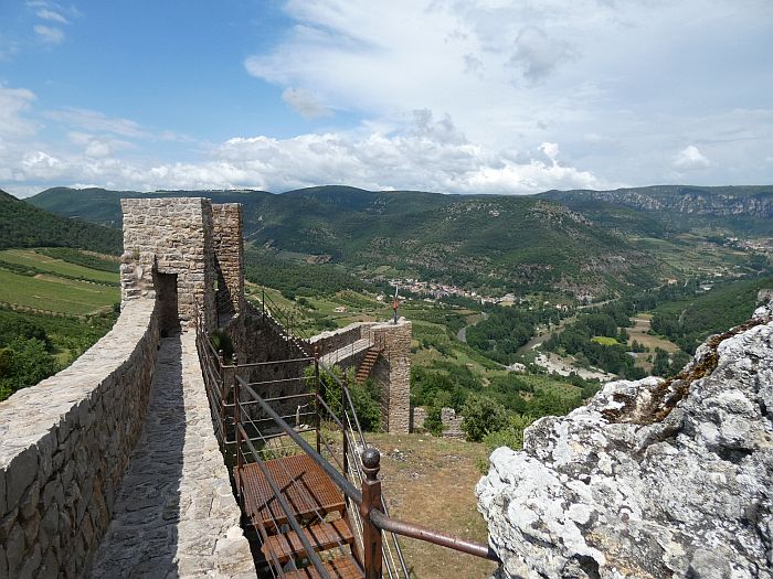 ... die - zum Glück heruntergelassene - Zugbrücke. ![]() Dann noch etwas hochgewendelt - und schon der ... ![]() ... erste Ritter! Gemütlich war das sicher nicht! Obwohl auf so einem Bärenfell! ![]() So sah das früher also aus - da kamen sicher nur gute Freunde vorbei - aber sicher auch nicht sehr oft! ![]() Aber für diese Aussicht lohnt es sich schon! ![]() "Ein Hirsebrei?" - "Danke - ich habe gut gefrühstückt!" - Sehe ich so hungrig aus!? ![]() Mal sehen, ob die Bretter halten was sie versprechen ... ![]() ... bis jetzt schon - und hier ... ![]() ... auch noch! Na denn - lieber doch wieder etwas Fels unter Füßen! ![]() Dort komm ich her - dort muss ich wieder hin - also ... ![]() ... dort links geht es ... ![]() ... dort hinunter? ![]() Na das schau ich mir doch auch noch an! ![]() Schon beeindruckend! ![]() Wenn man dazu bedenkt ... ![]() ... dass die Steine alle von Hand bearbeitet werden musssten - und ... ![]() ... hier herauf - und - noch da hinauf transportiert werden musste! ![]() Nicht mein Problem! Ich muss schauen, dass ich wieder hinunterkomme! ![]() Denn da gibt es das verdiente "Bergbier" - mit toller Aussicht auf's Tal des Tarn. ![]() 16 Uhr! Dort oben Ziel 2 und ein Wegweiser - "Trail 12"! ![]() Das Bier scheint zu wirken! Ich habe schon ordentlich Höhe gemacht! ![]() Wenn auch der Weg steinig und steil ist! ![]() Bist du oben ... ![]() ... kannst du auf die Burg runterschauen! ![]() Wie konnte ich da eigentlich heraufkommen!? Aber es ging! ![]() Ein paar hundert Meter - und ausser dunklen Wolken, war ... ![]() ... mein zweites Ziel zu sehen. ![]() Geschafft! ![]() No ein bisschen die tolle Aussicht genießen - dann ... ![]() ... ist es an der Zeit sich dorthinunter auf den Weg zu machen ... ![]() ... bevor sich die Wolken zusammenrotten! ![]() Ein guter Weg aber von oben sind es noch 5,5 Kilometer! Eine ... ![]() ... Notunterkunft wäre ja noch am Wegesrand! ![]() Was soll man sagen? ![]() Das "Chateau Peyrelade" - ... ![]() ... noch in der Abensonne ... ![]() ... der Campingplatz schon im Schatten! ![]() Von jetzt ab geht es ... ![]() ... nur noch bergab. ![]() War doch eine tolle Tour - oder!? ![]() Ein kleiner Abstecher ins Restaurant am Platz ... ![]() ... während dort oben noch die Sonne scheint! ![]() Noch kurz in den 1. Stock zum Duschen! Dann - "Bon nuit!" |