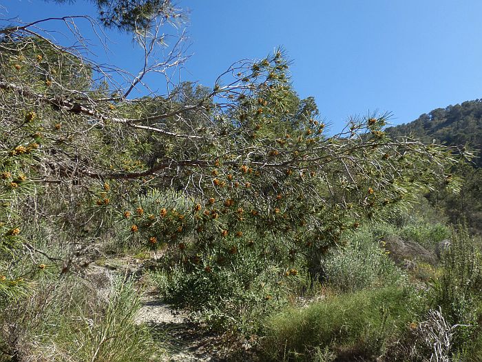 ![]() Hier war ich schon im letzten Jahr - doch heute soll es hier ... ![]() ... weitergehen! Eingenebelt vom Blütenstaub aus den Zapfen - irgendwie lästig! ![]() Wie auch der steile Aufstieg in der Falllinie - da ... ![]() ... gönnt man sich gern mal den Ausblick auf die bereits gewonnenen Höhenmeter - bevor ...