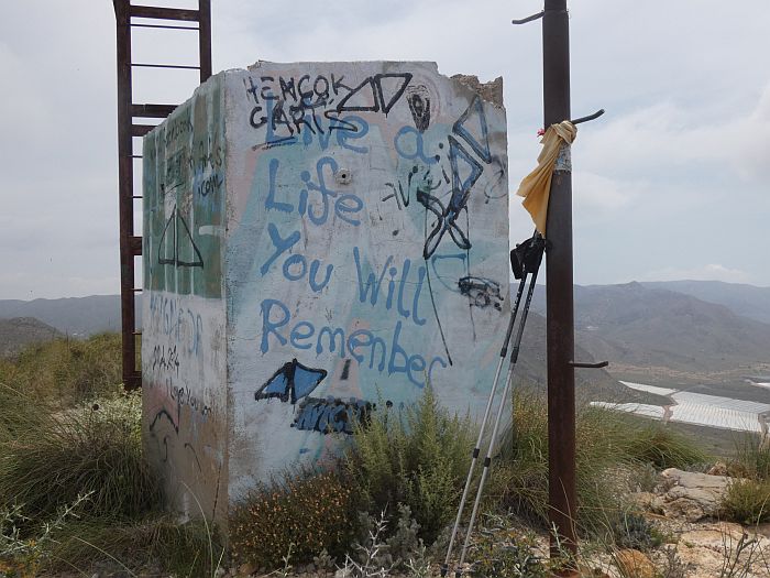 ... dort hinauf zu den blauen Felsen ... ![]() ... also diesen Weg entlang ... ![]() ... hier scharf rechts abbiegen - und ... ![]() ... immer schön den "Vorsichtsgang" einlegen. ![]() Und wer hat ein Herz für den alten "Holz-Manne"? ![]() Der Weg sicher nicht - und ... ![]() ... auf dem geht es noch ordentlich nach oben ... ![]() ... und der Mast wird auch immer kleiner - statt größer! ![]() So sieht er schon besser aus - da kann mich auch das fiese Kletterhindernis nicht mehr aufhalten! ![]() Toller - wenn auch etwas diesiger - Ausblick auf Puerto de Mazarron ... ![]() ... Azohia und Los Madriles! ![]() Hier sollte man schon noch ein nettes Plätzchen finden ... ![]() ... das war Januar 2019 nicht ganz so einfach! ![]() Viel Stellplatz und ... ![]() ... alles ist so schön ruhig drumherum - zumindest am Abend! ![]() Hatte ich beim letzten Besuch gar nicht bemerkt... ![]() ... die kleine Madonna unterhalb des Pfeilers! ![]() "Lebe ein Leben, an welches du dich - gerne - erinnerst!" Stimmt! ![]() Ein letzter Blick - dann ... ![]() ... geht es wieder hinab. Aber nicht wieder den Weg dort unten ... ![]() ... sondern ich folge ab jetzt dem Steinfrauchen - "Follow me - just follow me!" .... ![]() ... schade halt - Amanda war es leider nicht! * https://www.youtube.com/watch?v=b9YyPIiT2pM ![]() Die Temperatur halt! Ich sollte mich wohl lieber auf den Weg konzentrieren ... ![]() ... die schöne Natur ... ![]() ... den Ausblick - auf noch ein paar Höhenmeter Schotterstrecke - die ... ![]() ... vor dem Becken endet - dahinter Los Madriles - rechts die "Killer-Bienen" - denen gehe ... ![]() ... ich aus dem Weg und stöckele lieber an den Killer-Tomaten vorbei - Spaß! Die sind abgeerntet! ![]() Dort oben war ich - und irgendwo dort hinten steht das Manne-Mobil. ![]() Los Madriles hat einen seiner wenigen Gäste wieder! ![]() Ja da könnte ich doch noch etwas Tennis spielen - aber ohne Partner ... ![]() ... er hätte Lust und Zeit, müsste aber erst seine Racket holen! ![]() Das dauert mir zu lange - ich möchte es noch etwas blubbern lassen. Aber dazu ... ![]() ... muss ich erst wieder den Berg rauf. Oder könnte einfach hierher umziehen! ![]() Jetzt noch schnell Stock gegen Badeutensilien getauscht - und wenn schon nicht Amanda ... ![]() ... vielleicht gibt es es so einen netten Glitzer-Disco-Käfer am Pool! |